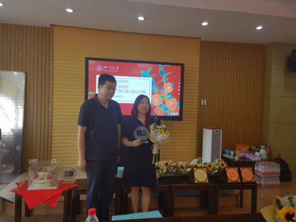 图 1 学院党委邰明松书记发表讲话 图 2 学院为荣休教师准备的荣休纪念章